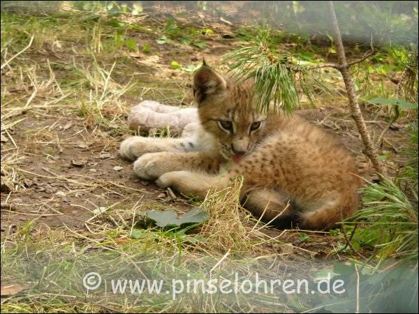 Ich dachte erst, der zweite kleine Luchs war dahinter versteckt. Andere Fotos von mir zeigen jedoch, dass es ein Kaninchen war, das kurz vorher zum Füttern gegeben wurde. Beim nächsten(nicht veröffentlichten) Foto frisst dieser Luchs das Häschen auf - ja Raubkatzen halt ...